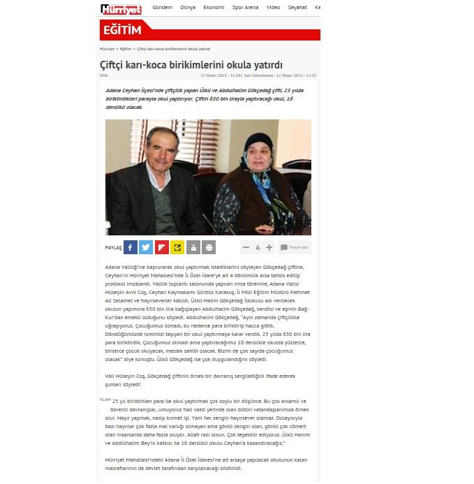 22 Nisan 2013 Tarihli Hürriyet Gazetesi haberi