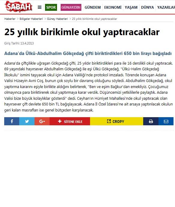 13 Nisan 2013 Tarihli Sabah Gazetesi Haberi